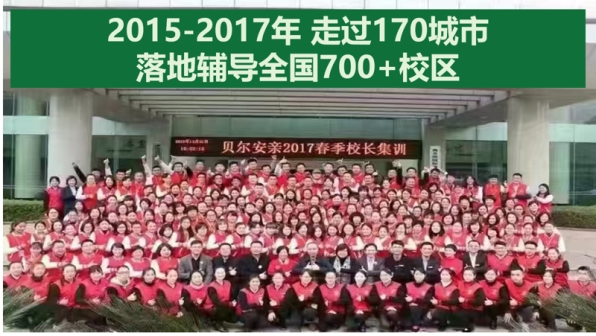 2017年,是郑健琦创业路上的关键转折点。为了打破托管运营的局限,通过系统赋能行业做更大的版图,他走过170座城市,落地辅导全国700+校区,全力配合台湾顾问团的技术支持与落地指导,制定了涵盖人力资源、客户服务、流程管理、经营绩效、市场发展、策略管理的六大核心体系,细化到单个月校区重要专案,制定招生的具体指标并指导落地。